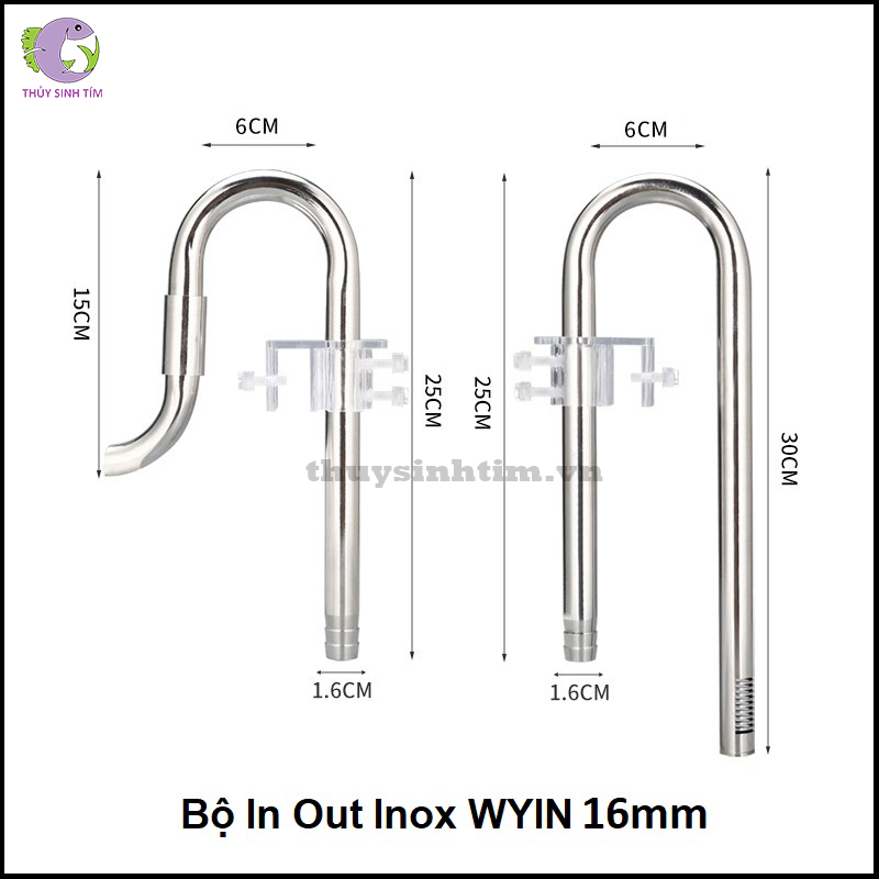 Bộ In Out Inox WYIN sử dụng rất dễ dàng, bạn chỉ cần lắp ống nước vào đúng 2 đầu in - out của máy lọc thùng và cố định ống vào thành bể bằng bộ kẹp mica có sẵn. Có thể đặt các ống in - out ở nhiều vị trí khác nhau trong bể sao cho phù hợp nhất với thiết kế của bể thủy sinh.